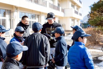 1月12日、中佐都小学校にて、アカハネ保険事務所主催の野球教室を開催しました。