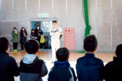 本イベントは、地域貢献活動の一環として、佐久市内の小学生を対象に実施したものです。当日は、昨年リーグ優勝に貢献した長野県出身の阪神タイガース・高寺 望夢(タカテラ ノゾム)選手をゲストにお迎えしました。